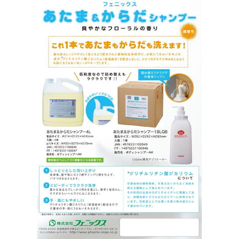 フェニックス あたま&からだシャンプー 4L×4本入 3ケースロット【メーカー直送・代引き不可・時間指定不可・沖縄、北海道、離島不可】