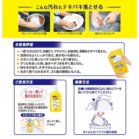 ●持続する強い泡!いやなギトギト油汚れも、つぎ足しなしで気持ちよく一気に洗えます。