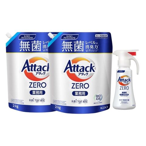 ●アタックZERO2kg2袋と専用計量容器 ワンハンドタイプ1本の便利なセットです。