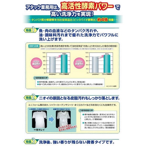 ●高活性酵素パワーで高い洗浄力を実現!ガンコな汚れを一度の洗たくでスッキリ!