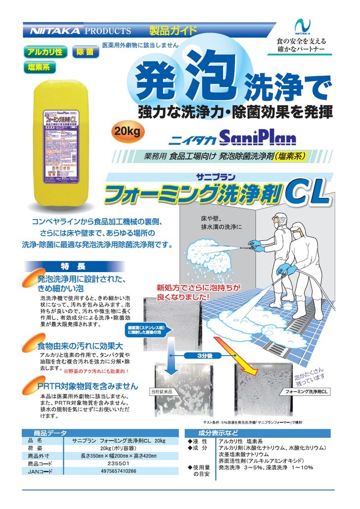 ニイタカ サニプラン フォーミング洗浄剤CL 20kg【取り寄せ商品・即納不可・代引き不可・返品不可】
