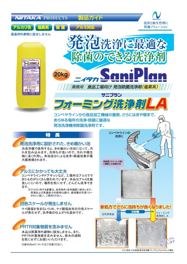 ニイタカ サニプラン フォーミング洗浄剤LA 20kg【取り寄せ商品・即納不可・代引き不可・返品不可】