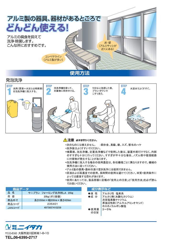 NIITAKA 業務用 発泡洗浄に最適。アルミを腐食しにくく、食品工場におすすめ