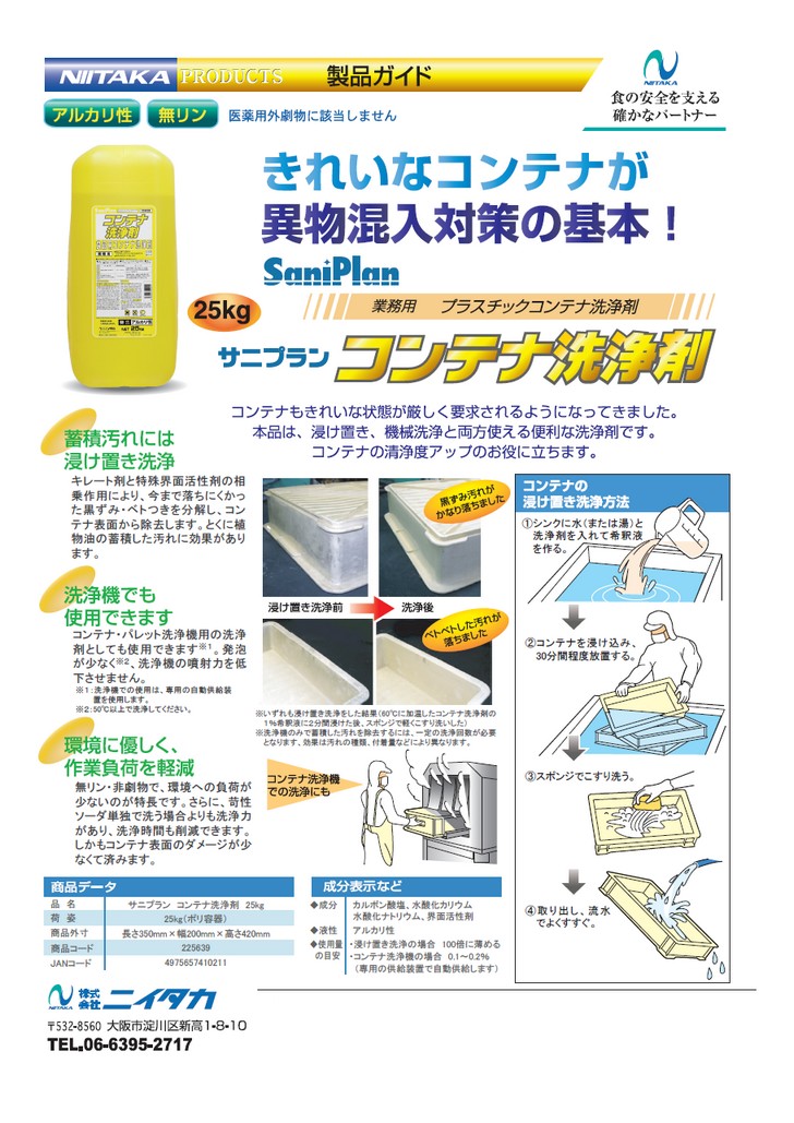 【法人様限定】ニイタカ サニプラン コンテナ洗浄剤 25kg【取り寄せ商品・代引き不可・時間指定不可・沖縄、離島不可】