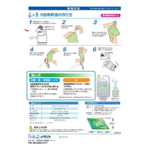 ●強力な洗浄力5倍に薄めても高い洗浄力を発揮し、浴室全体の洗浄にこれ1品で対応できます。