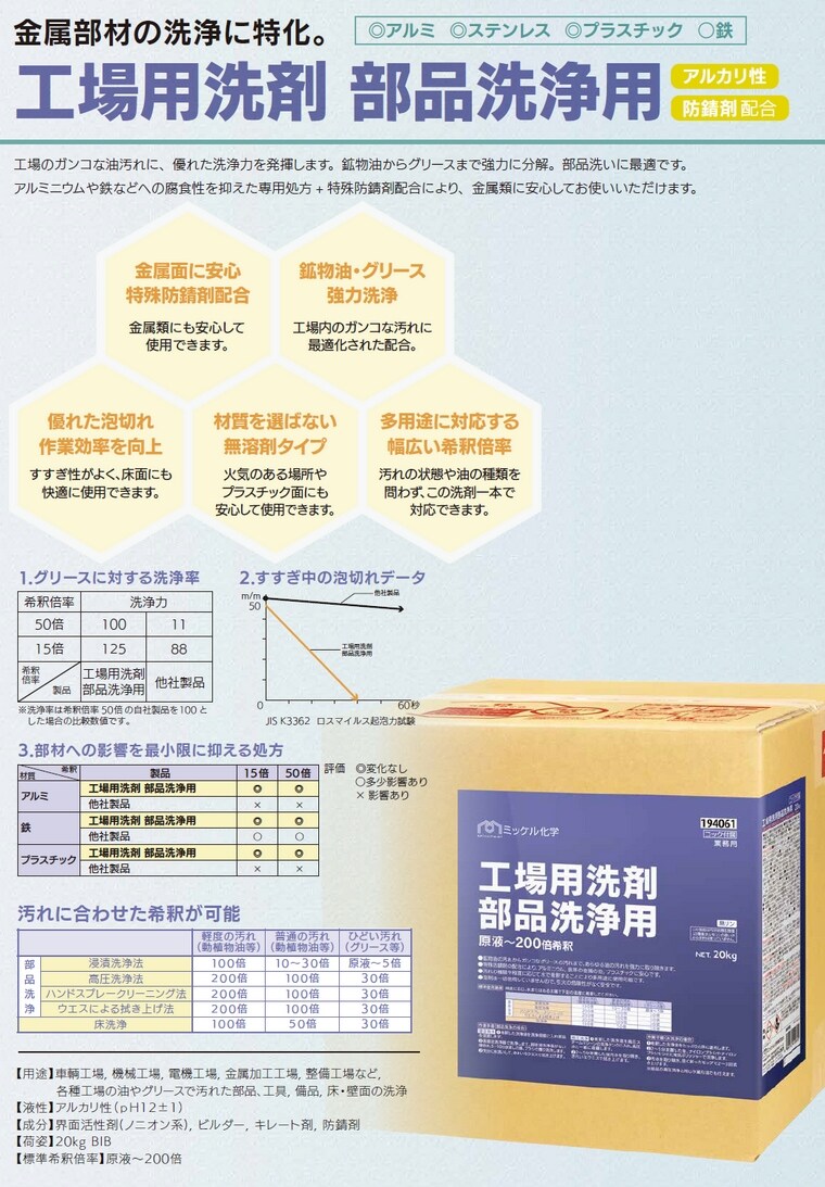 【全国送料無料】ミッケル化学 工場用洗剤・部品洗浄用 20kg【メーカー直送・代引き不可・時間指定不可】