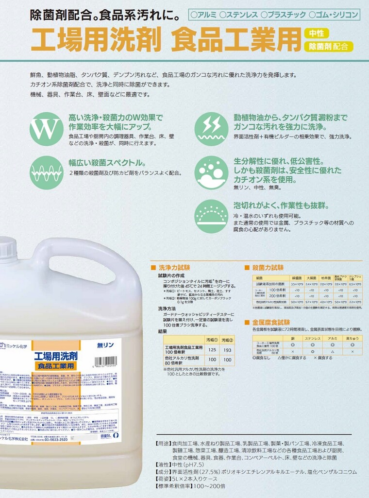 【全国送料無料】ミッケル化学 工場用洗剤・食品工業用 5L×2本入【メーカー直送・代引き不可・時間指定不可】
