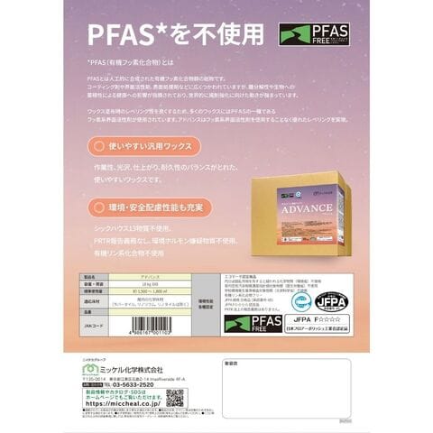 【全国送料無料】ミッケル化学 PFASフリー樹脂ワックス アドバンス ADVANCE 18kg【メーカー直送・代引き不可・時間指定不可】