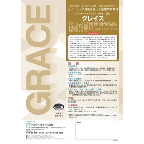 【全国送料無料】ミッケル化学 高光沢持続・超耐久性樹脂ワックス グレイス 18kg【メーカー直送・代引き不可・時間指定不可】