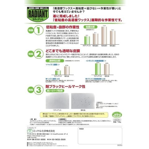 【全国送料無料】ミッケル化学 高濃度樹脂ワックス ラディアント 18kg【メーカー直送・代引き不可・時間指定不可】