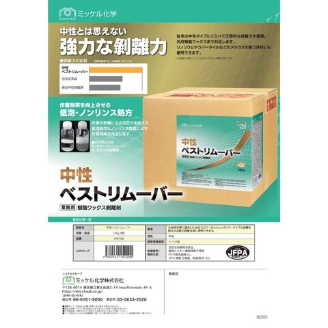 【全国送料無料】ミッケル化学 中性タイプ 剥離剤 中性ベストリムーバー 18kg【メーカー直送・代引き不可・時間指定不可】
