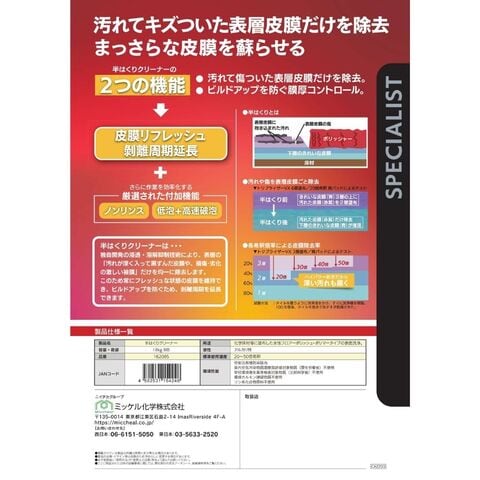 【全国送料無料】ミッケル化学 表層皮膜を除去できるノンリンス洗浄剤 半はくりクリーナー 18kg【メーカー直送・代引き不可・時間指定不可】