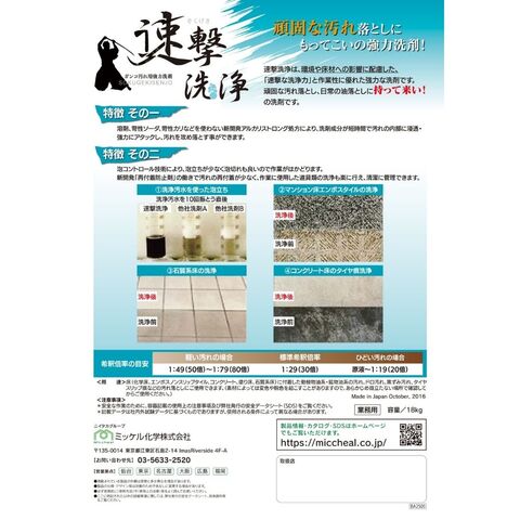 【全国送料無料】ミッケル化学 マンション廊下用洗浄剤 速撃洗浄 18kg【メーカー直送・代引き不可・時間指定不可】
