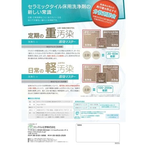 【全国送料無料】ミッケル化学 セラミックタイル用洗浄剤 即効マスター 4kg×3本【メーカー直送・代引き不可・時間指定不可】