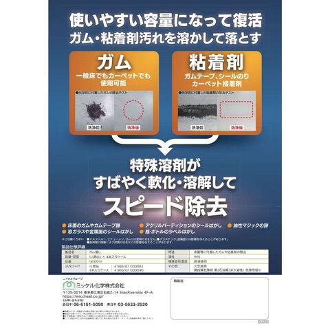【全国送料無料】ミッケル化学 ガム落し 1L×4本【メーカー直送・代引き不可・時間指定不可】