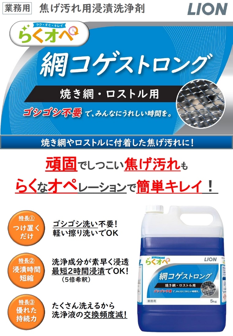 ライオン 焦げ汚れ用浸漬洗浄剤 らくオペ 網コゲストロング 焼き網・ロストル用 5kg×2本入【取り寄せ商品・即納不可】