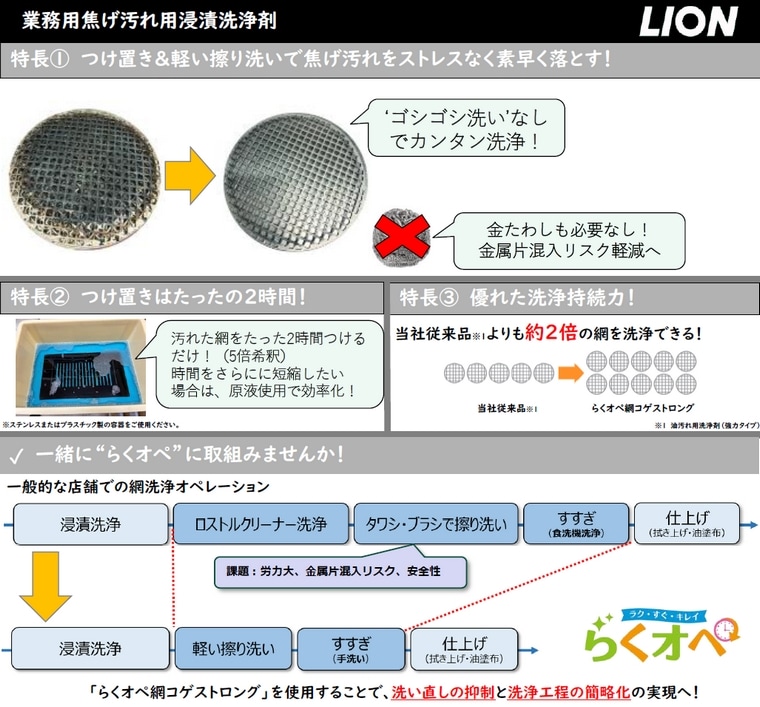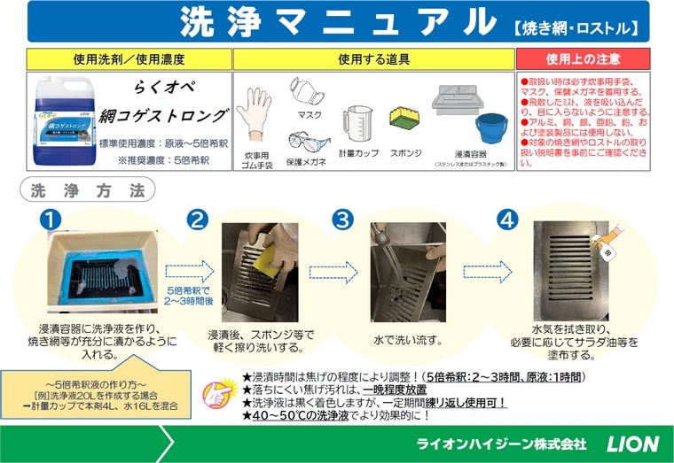 LION 業務用 焼き網やロストルに付着した頑固な焦げ汚れも、楽なオペレーションで簡単キレイ!