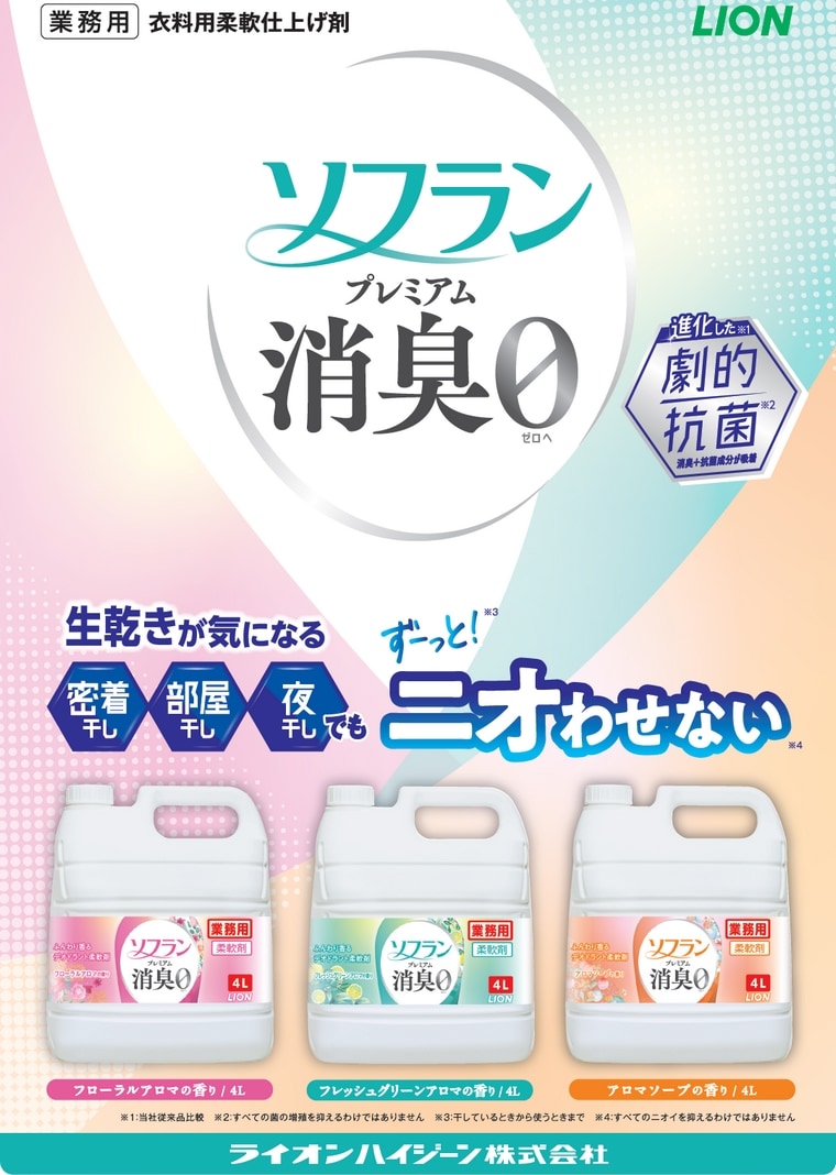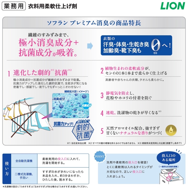 LION 業務用 生乾きでも、劇的抗菌で菌を生ませずニオわせない!ふんわり香るデオドラント柔軟剤