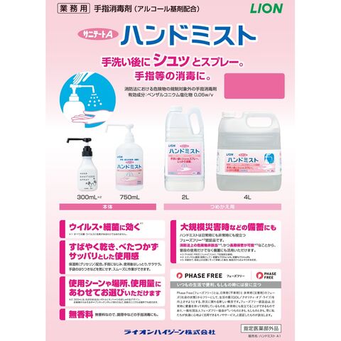 ライオン 手指消毒剤 サニテートAハンドミスト 4L