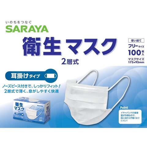 サラヤ 衛生マスク 2層式 耳掛けタイプ 100枚×20箱入(2000枚)●ケース販売お徳用【取り寄せ商品・即納不可】