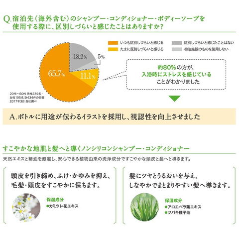 ●カミツレ花エキス(保湿成分)配合。頭皮を引き締め、ふけ・かゆみを抑え、毛髪・頭皮を健やかに保ちます。