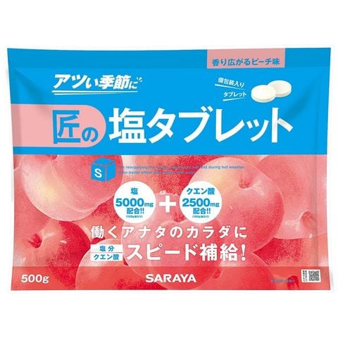 【数量限定】サラヤ 匠の塩タブレット ピーチ味 500g×10袋入【取り寄せ商品・即納不可・返品不可】