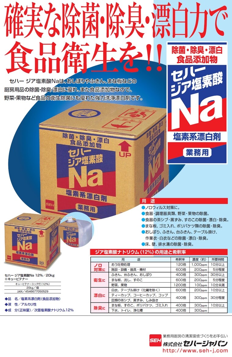 SEH 業務用 確実な除菌・除臭・漂白力で食品衛生を!強力洗浄漂白剤
