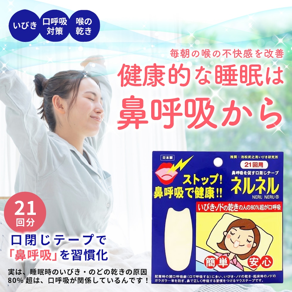 | 商品名 | いびき防止グッズ 鼻呼吸を促す 口閉じテープ ネルネル 21回用 |
