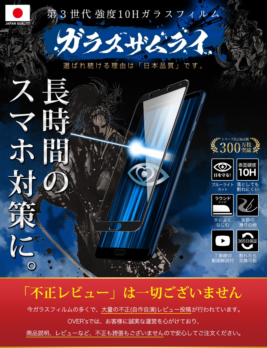 移動中の電車で、寝る前の暗闇で、ゲームのやりすぎで、ブルーライトを浴び続けると「目の痛み」「肩こり」「頭痛」を引き起こし、体全体に悪影響を与えます。 今日からできる "ブルーライト対策" を、ガラスザムライで。