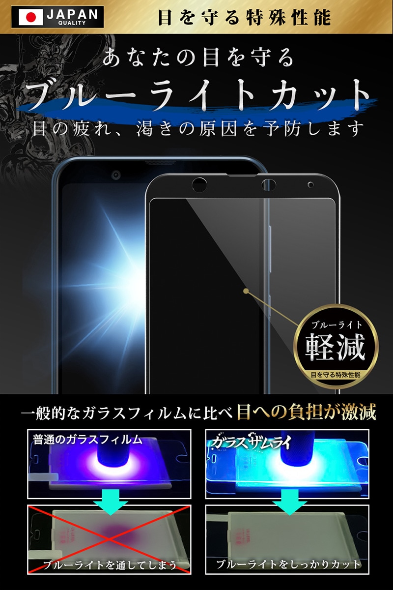 ガラスザムライ AQUOS Sense3 Plus ガラスフィルム ブルーライトカット 10H 国産ガラス素材 強化ガラス 保護フィルム フィルム 386-blue