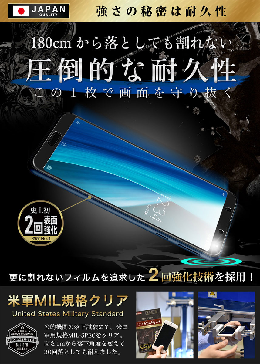 【 10H ガラスフィルム ~ 高さ1mから落ちても割れない 】