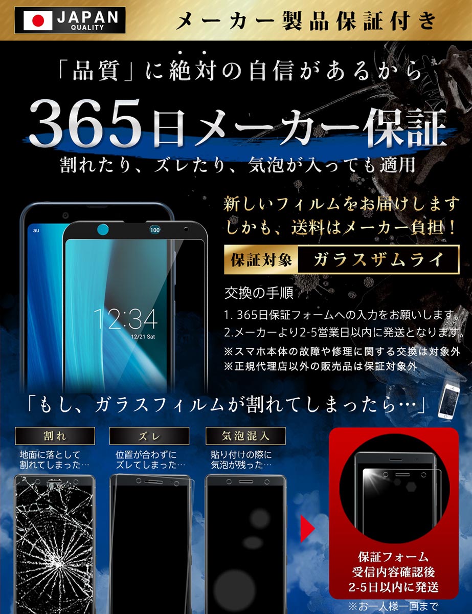 商品名:AQUOS Sense3 Plus ガラスフィルム 保護フィルム ブルーライトカット 10H ガラス ガラスザムライ らくらくクリップ付き フィルム