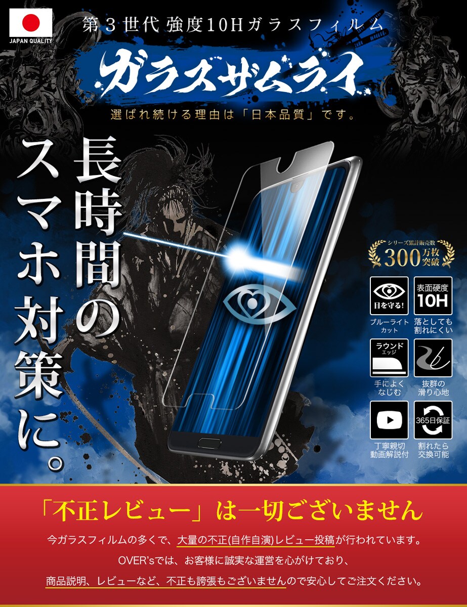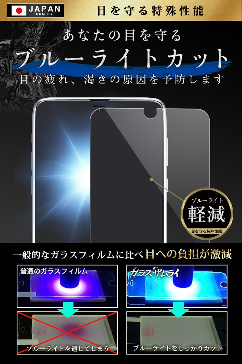 ガラスザムライ AQUOS R2 ガラスフィルム ブルーライトカット 10H 国産ガラス素材 強化ガラス 保護フィルム フィルム 386-blue