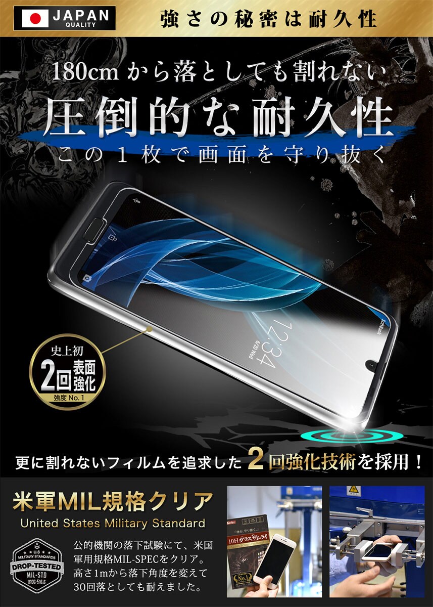 【 10H ガラスフィルム ~ 高さ1mから落ちても割れない 】