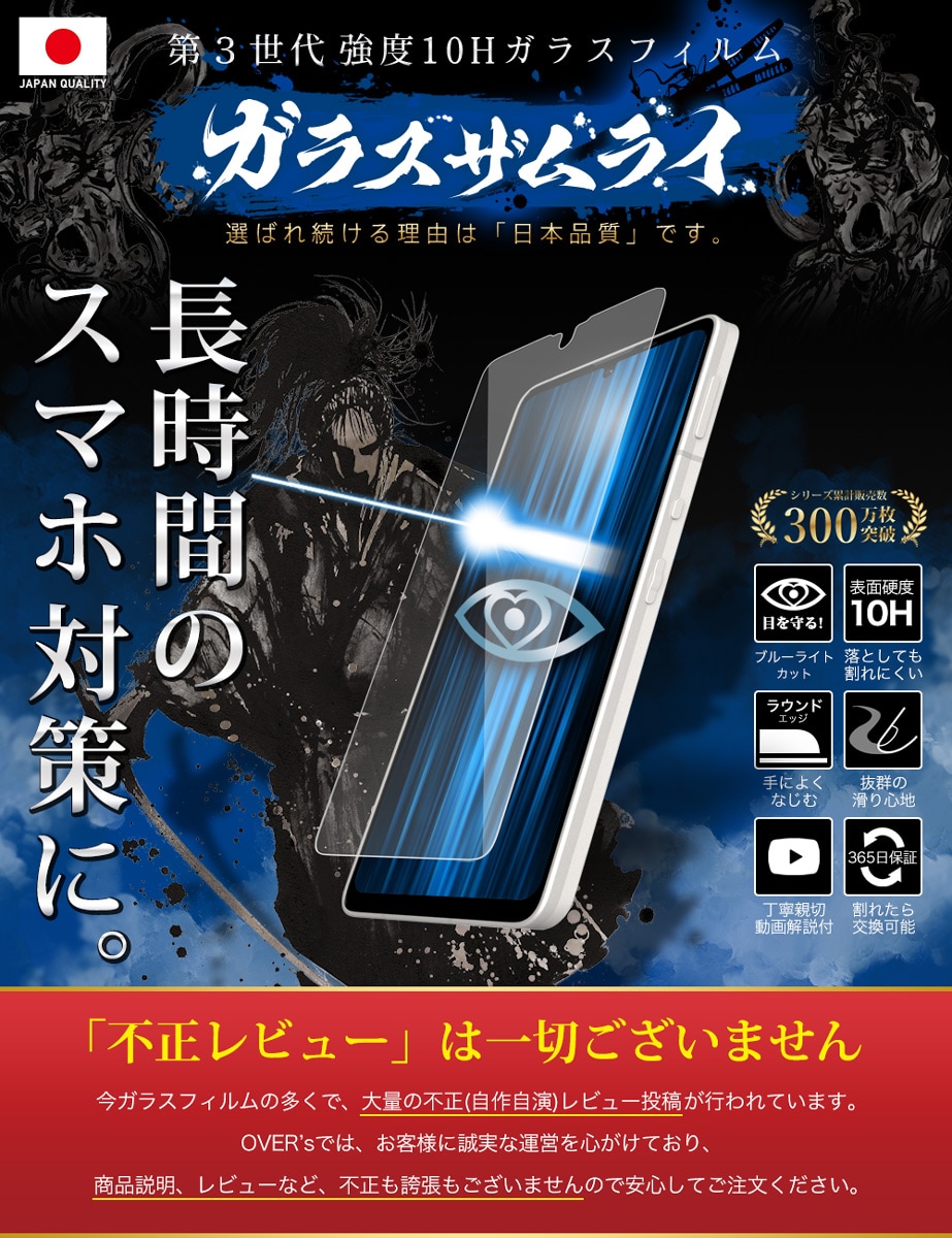 移動中の電車で、寝る前の暗闇で、ゲームのやりすぎで、ブルーライトを浴び続けると「目の痛み」「肩こり」「頭痛」を引き起こし、体全体に悪影響を与えます。 今日からできる "ブルーライト対策" を、ガラスザムライで。