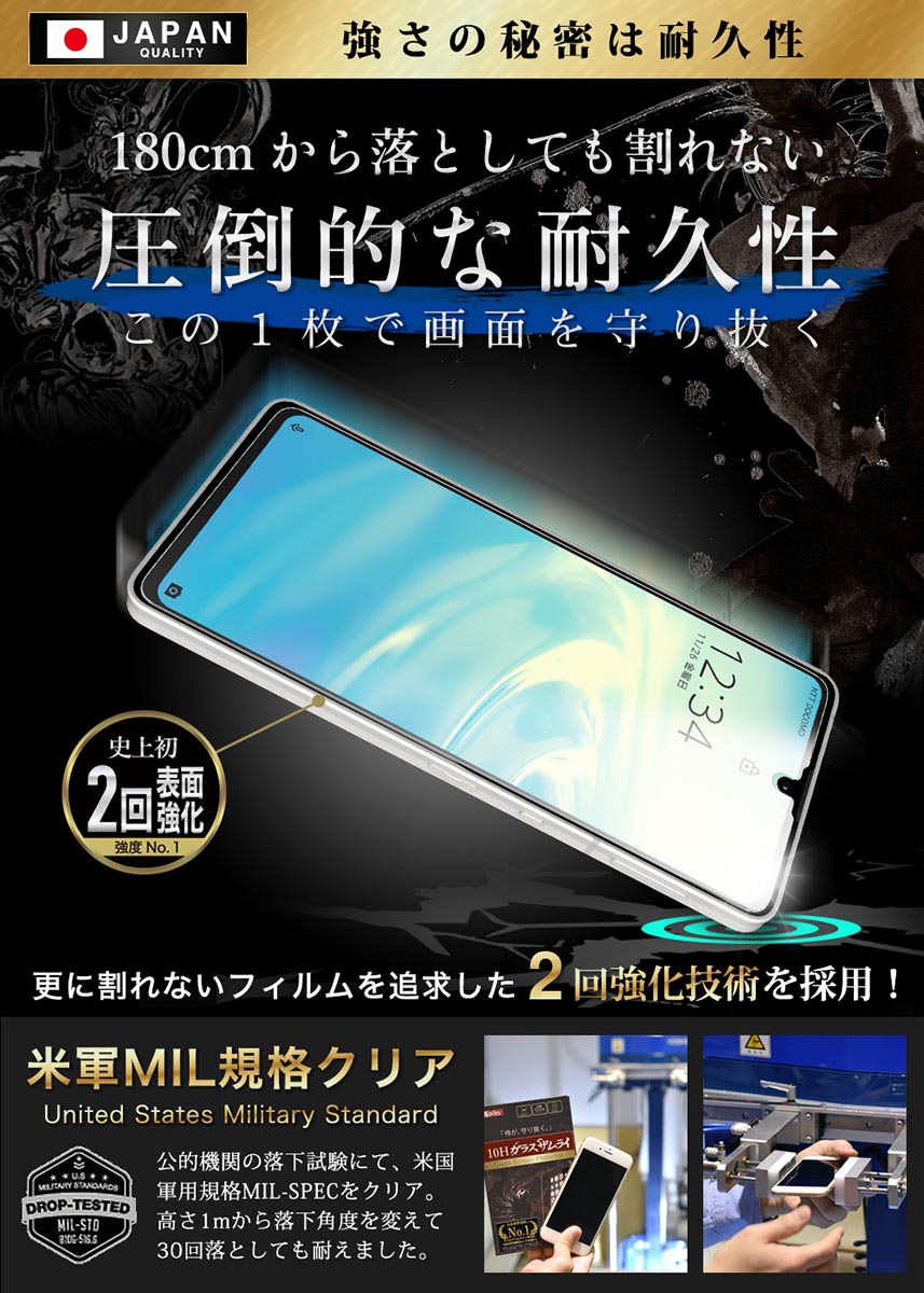 【 10H ガラスフィルム ~ 高さ1mから落ちても割れない 】