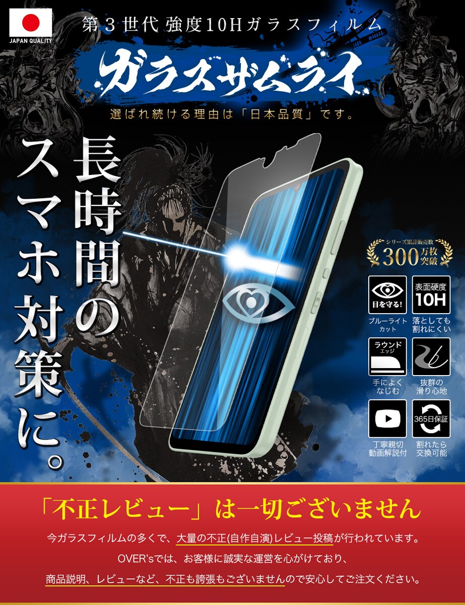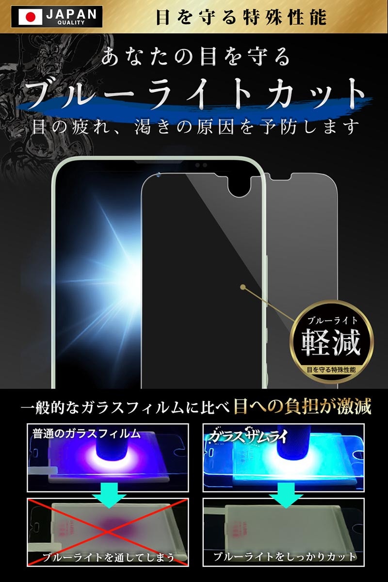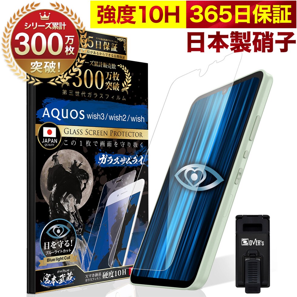 ガラスザムライ AQUOS wish3 / wish2 / wish ガラスフィルム ブルーライトカット 10H 国産ガラス素材 強化ガラス 保護フィルム フィルム 386-blue