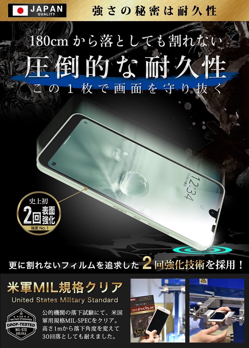 【 10H ガラスフィルム ~ 高さ1mから落ちても割れない 】