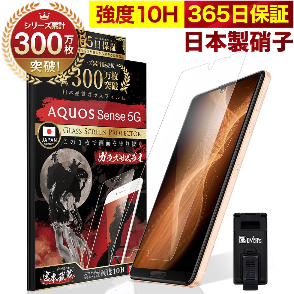 ガラスザムライ AQUOS sense 5G ガラスフィルム 10H 国産ガラス素材 強化ガラス 保護フィルム フィルム 297-k