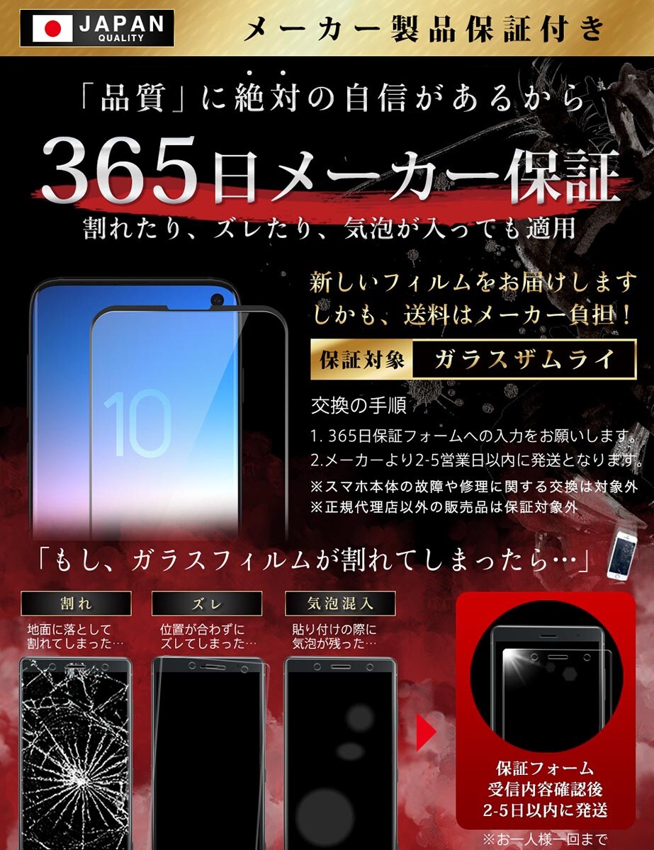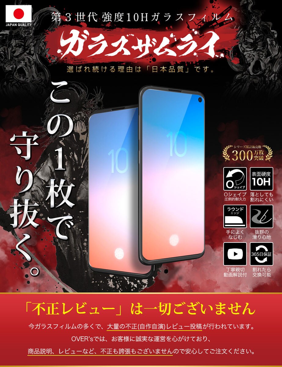 ガラスザムライ Galaxy S10 ガラスフィルム 10H 国産ガラス素材 全面保護 強化ガラス 保護フィルム フィルム 218-3d