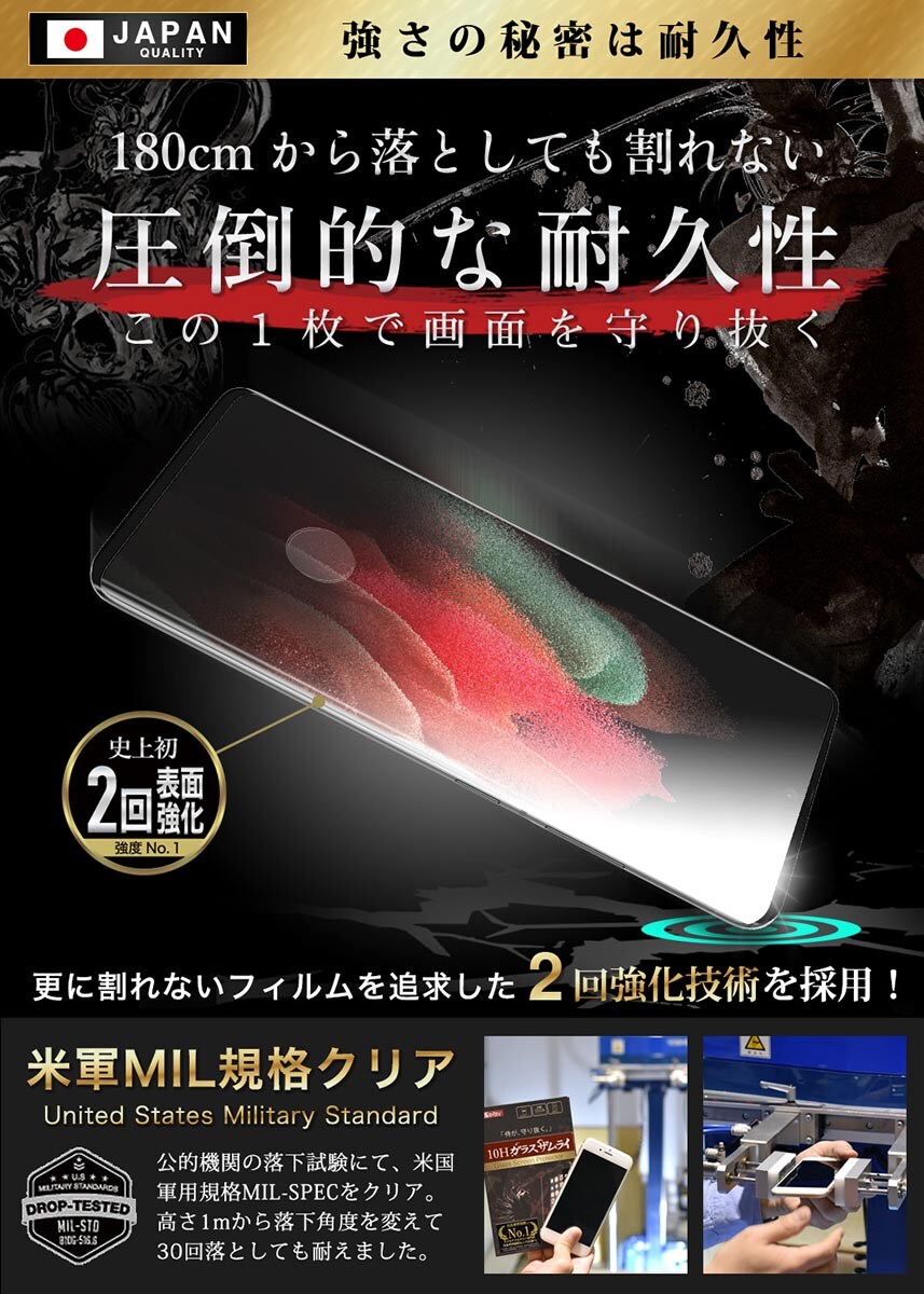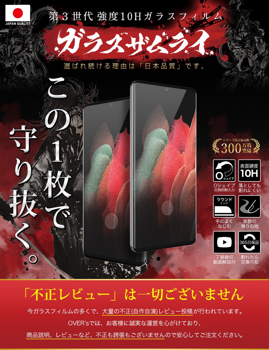 ガラスザムライ Galaxy S21 Ultra ガラスフィルム 10H 国産ガラス素材 全面保護 強化ガラス 保護フィルム フィルム 305-3d