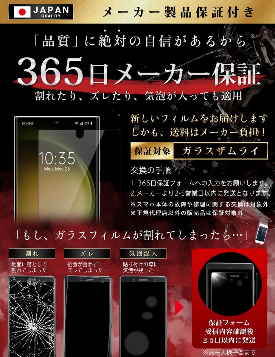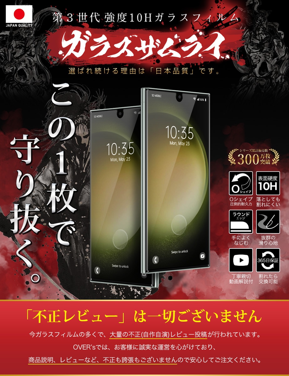 ガラスザムライ Galaxy S23 Ultra ガラスフィルム 10H 国産ガラス素材 全面保護 強化ガラス 保護フィルム フィルム 379-3d