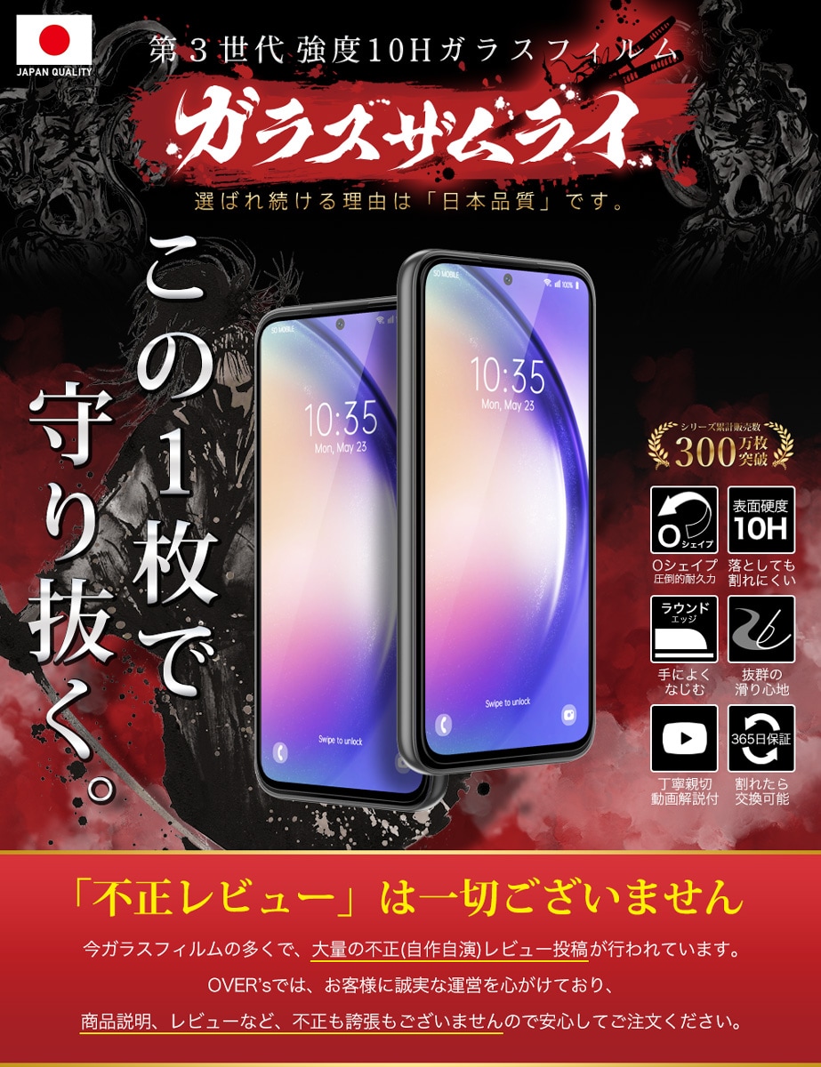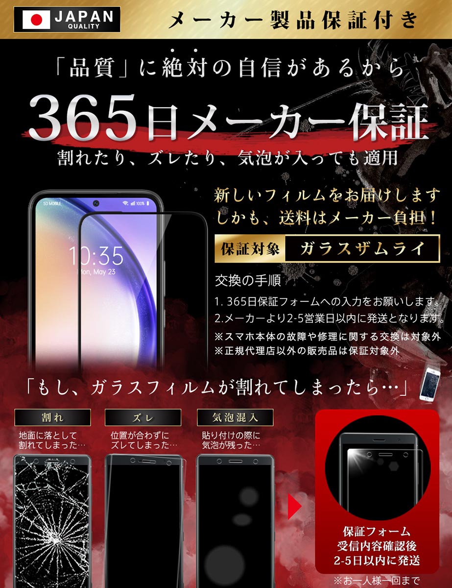 ガラスザムライ Galaxy A54 5G ガラスフィルム 10H 国産ガラス素材 全面保護 強化ガラス 保護フィルム フィルム 380-3d