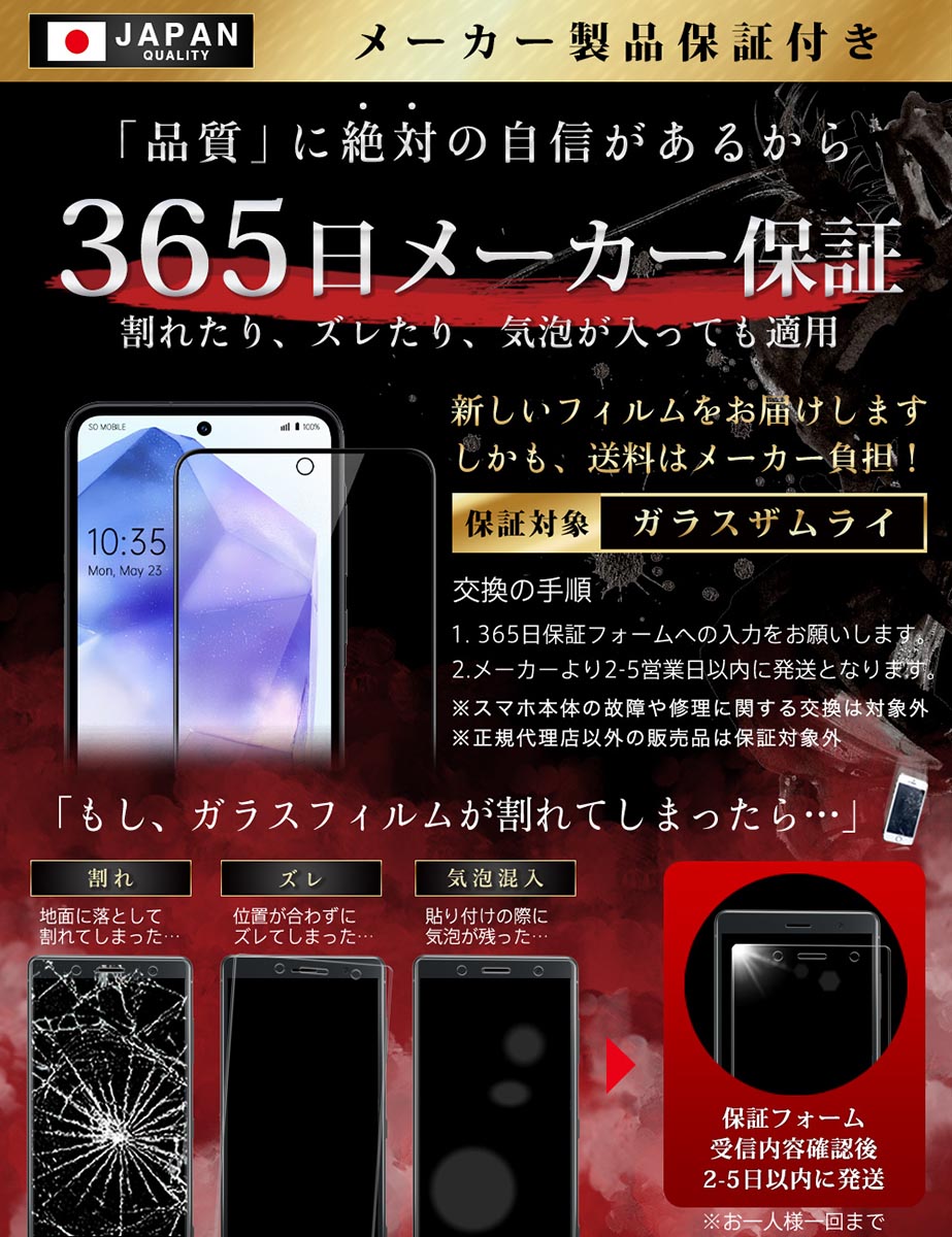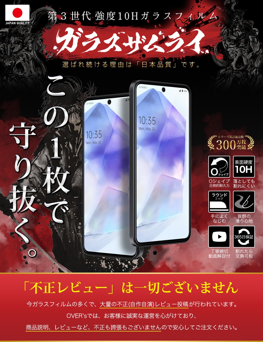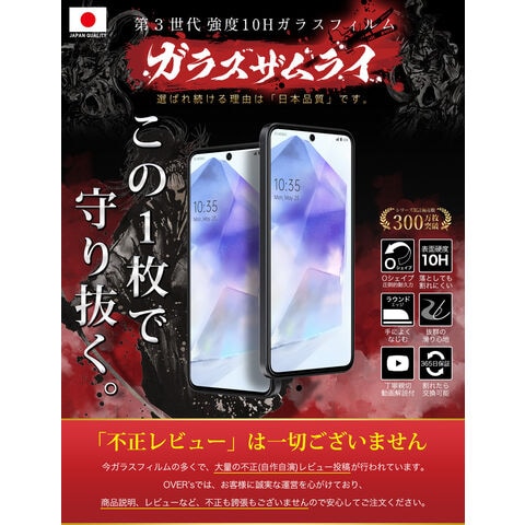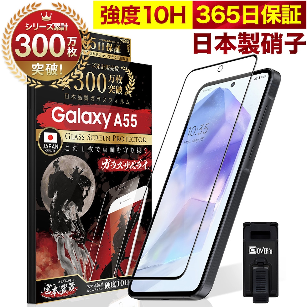 ガラスザムライ Galaxy A55 5G ガラスフィルム 10H 国産ガラス素材 全面保護 強化ガラス 保護フィルム フィルム 405-3d