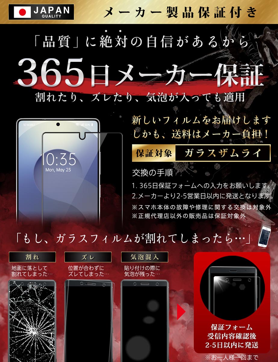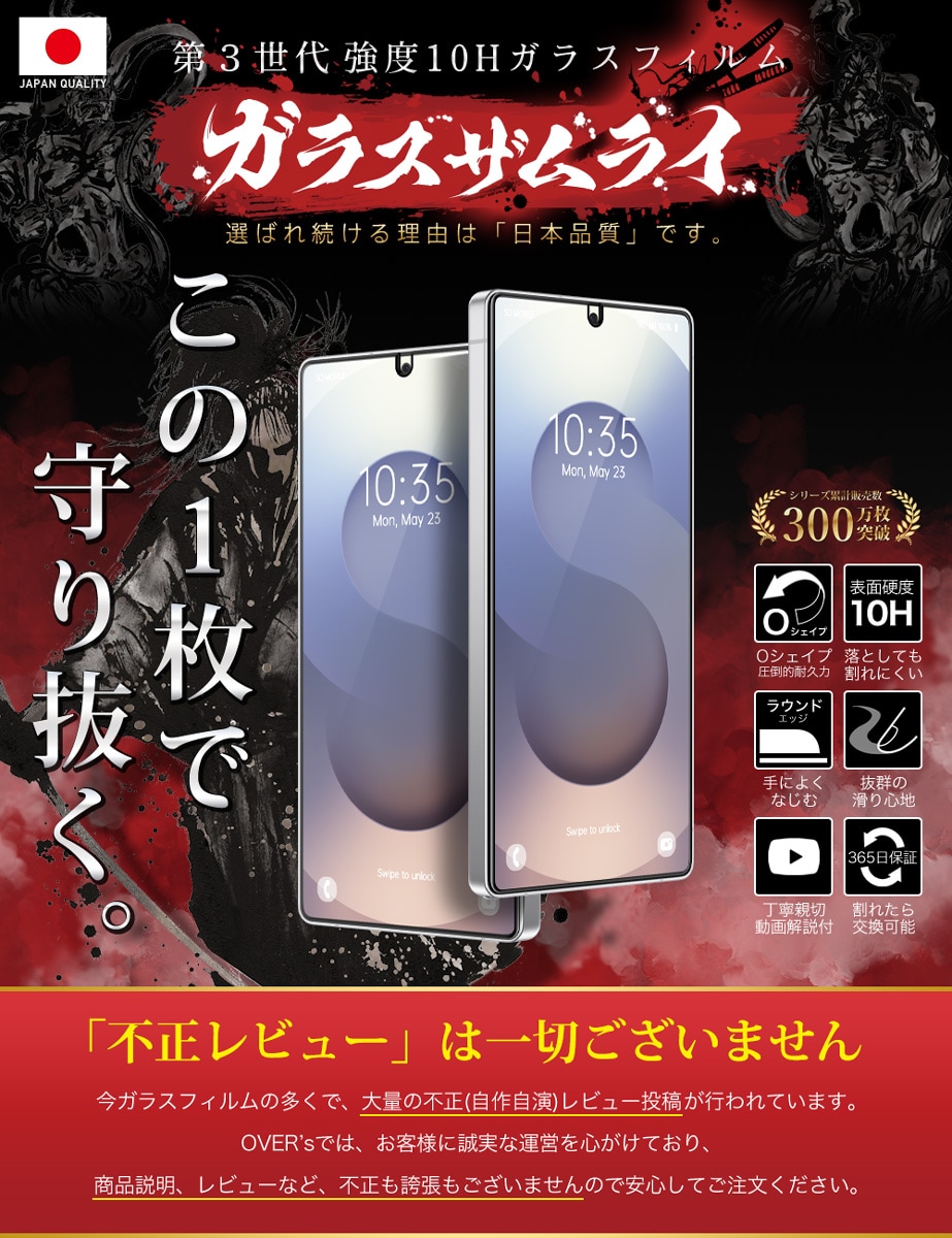 「フィルムって貼るのが難しい… 」 という悩みがありました。「誰でも簡単に、ズラさず貼るには?」 を考え、誰でもキレイに貼れるように「らくらくクリップ」を開発しました。実用新案取得済み【 ● らくらくクリップ が付属! 】ガラスザムライと一緒にお届けします。
