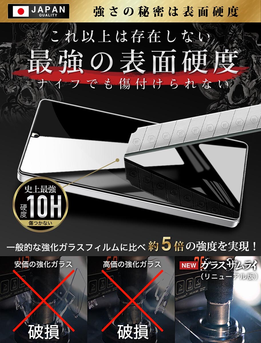 【 “割れない ” ~ ノーブランド品と比べて下さい 】 携帯ショップや家電量販店で販売される 5.000円の高級品 と同等の強度、特殊コーティングによる至極の指すべりの 高品質ガラスフィルム を低価格で提供します。