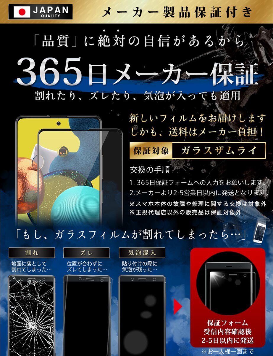 商品名:Galaxy A51 5G ガラスフィルム 保護フィルム ブルーライトカット 10H ガラス ガラスザムライ らくらくクリップ付き フィルム