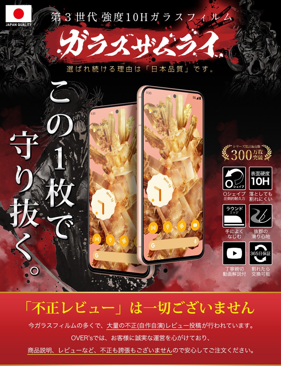 ガラスザムライ Google Pixel 8 ガラスフィルム 10H 国産ガラス素材 全面保護 強化ガラス 保護フィルム フィルム 392-3d