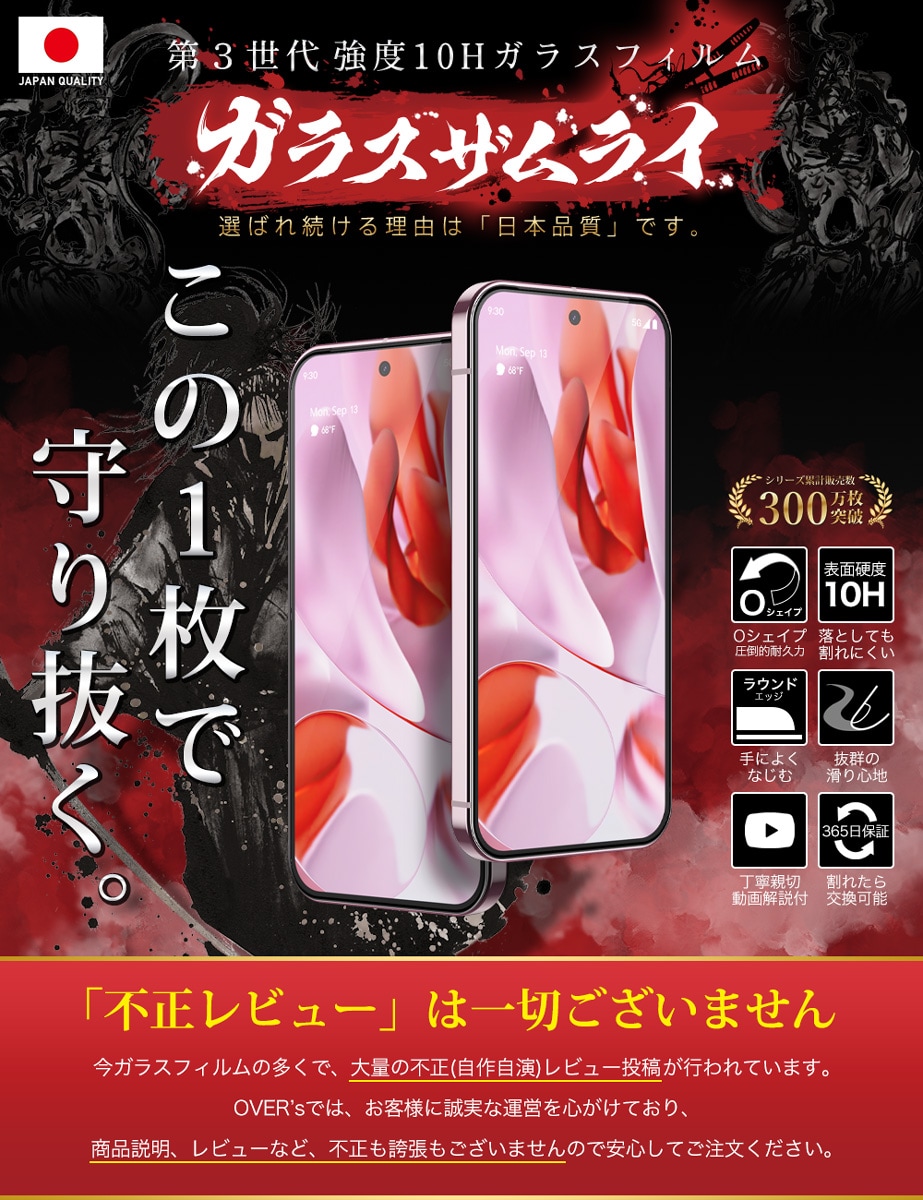 ガラスザムライ Google Pixel 9 Pro ガラスフィルム 10H 国産ガラス素材 全面保護 強化ガラス 保護フィルム フィルム 417-3d