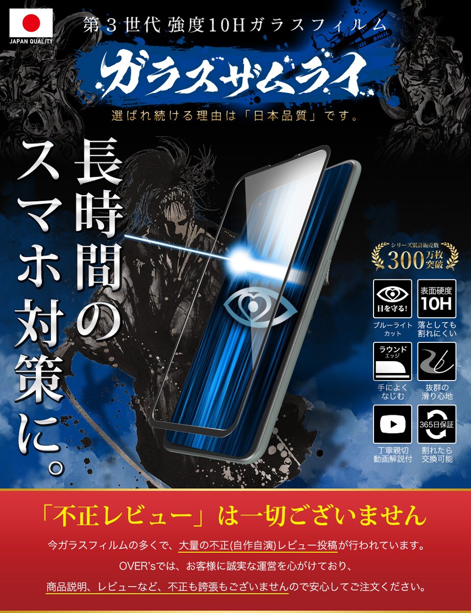 移動中の電車で、寝る前の暗闇で、ゲームのやりすぎで、ブルーライトを浴び続けると「目の痛み」「肩こり」「頭痛」を引き起こし、体全体に悪影響を与えます。 今日からできる "ブルーライト対策" を、ガラスザムライで。